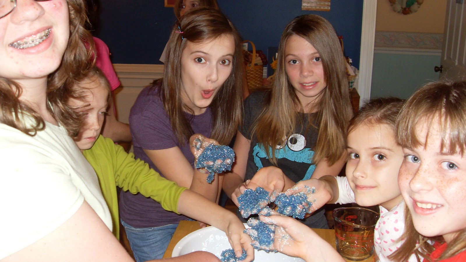 “Eeeeewwww!! This is soooo cool!” The tiny packets actually made quite a bit of yuck, except for the Chunky Yuck, which didn’t fluff up a whole lot for some reason. As you can see from our pictures, we added food coloring, which made it a whole lot more fun–especially adding green to the Sticky Yuck. The favorite Yuck product was the Sticky Yuck because it felt like snot, as proclaimed on the pamphlet. Comment overheard: “So, they (the makers) must pick their noses a lot if they know what snot feels like!” Overall, the Yuck products were a huge hit with my girls and their friends.
