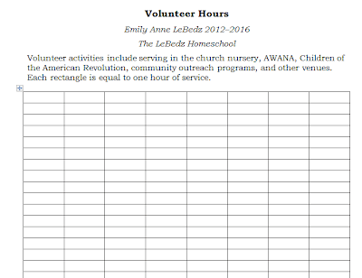 One important record-keeping aspect of high school that was new to me the second time around was keeping track of volunteer hours. As colleges get more and more competitive, documenting volunteer hours becomes more important.